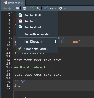 Before going deeper into details, see how to easily create an html or a pdf (or others) with Rmarkdown using R studio: